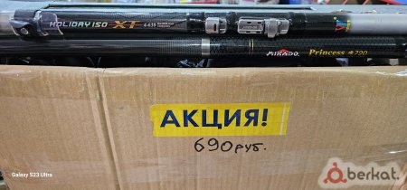 удочки holiday iso xt 4-630(carbon 98%.*mikodo*princess 720 (carbon98%). у нас акция на удочки обычная цена 2-3тысяч рублей по акции у нас они по 690рза 6.3 метровые и 850за 7.2метровые.таких цен нет нигде ,поспешите.без торга!оптом от 10шт будет другая цена !!