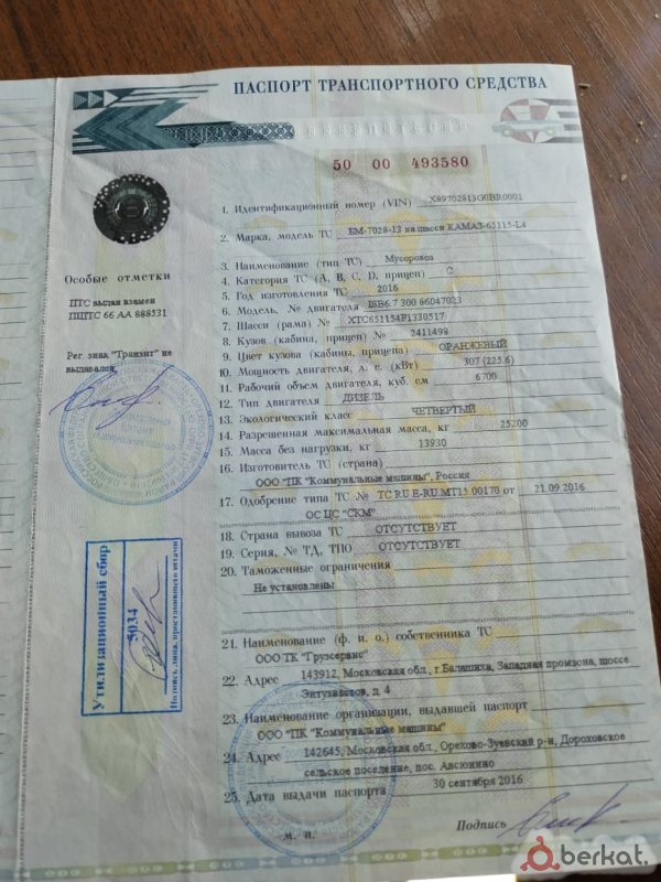 документы на камаз камаз 65115 2016 год каменс двиг