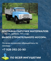 Зил, доставка сыпучих материалов, щебень, песок-жёлтый, серый, мытый, а также, вывоз строительного мусора, обращаться по номеру телефона ☎️ 8928 092-20-90