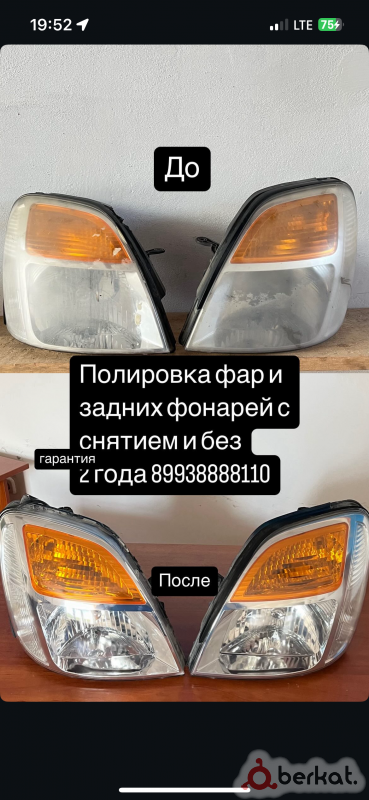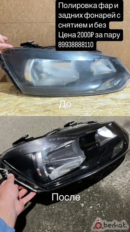 Полировка фар и задних фонарей С снятием и без Гарантия 2 года Цена 2000₽ за пару
