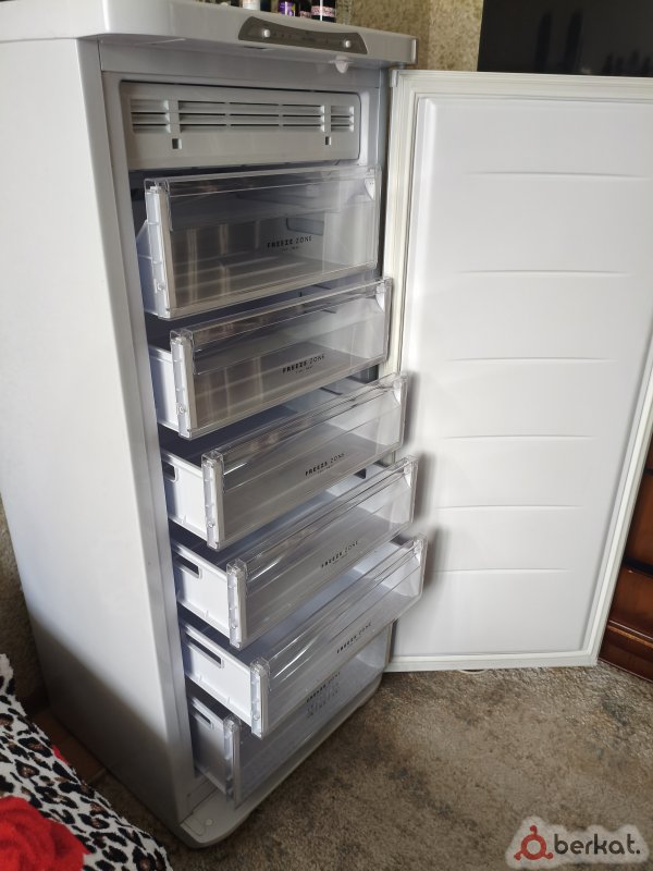 Морозильник которому даже года нет,большее время он стоял отключеным,не давно провёл полную проверку,работает идеально. Есть маленькие вмятины.