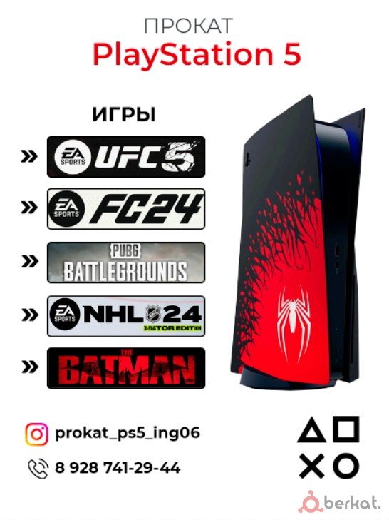 Сдаю в аренду ps5 есть игры такие как UFC4/5, FIFA 24, FIFA 25, Need for Speed, хокей 24, PUBG, batman и тд Цена1000р в залог паспорт номер 8928-741-29-44