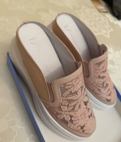 Продаю шлёпанцы Francesco v , Италия. Нежно-пудрового цвета. Маркировка 40 размер, но подходит на 39, и на 38.5, смотря на анатомию ноги. Ни разу не надевались, только примерка. Абсолютно новые. Покупались на подарок, но не подошли. Покупались за 11, небольшой торг уместен.