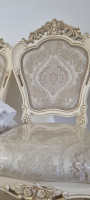 Продаю диван с двумя креслами, состояние Б/У, материал обивки ткань, цвет корпуса многоцветный материал. Каркас мебели выполнен из натурального массива дуба и декорирован резными элементами, производства Румыния. -Размер; Диван 3х местный с раскладным механизмом, количество элементов в наборе 3.