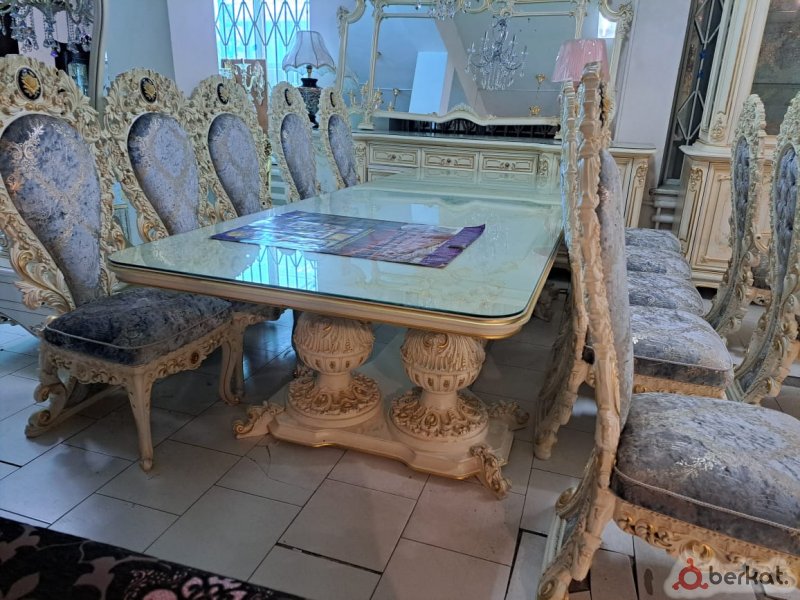 Продается гостиная мебель GD GUANGDA. Мебель новая.В комплекте стол обеденный размер 3,0*1,25*0,80, два кресла, 8 стульев, витрина с мягкой обивкой внутри, как на стульях, комод с зеркалом. Цена 2000000. Реальному покупателю хороший торг уместен.