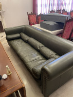 Большой кожаный диван Привезли с Италии Размеры: длина 270см Ширина: 108см Глубина: 70см Цвет: темно-зеленый (почти серый) В Малгобеке