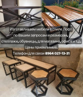 Изготовление мебели в стиле Лофт по Вашим запросам и размерам, стеллажи, обувницы, столы, стулья, прихожие,мангалы, кровати, мебель для ванной, магазина, офиса и т.д.Цены приемлемые. Телефон 89632806006,89287430408.