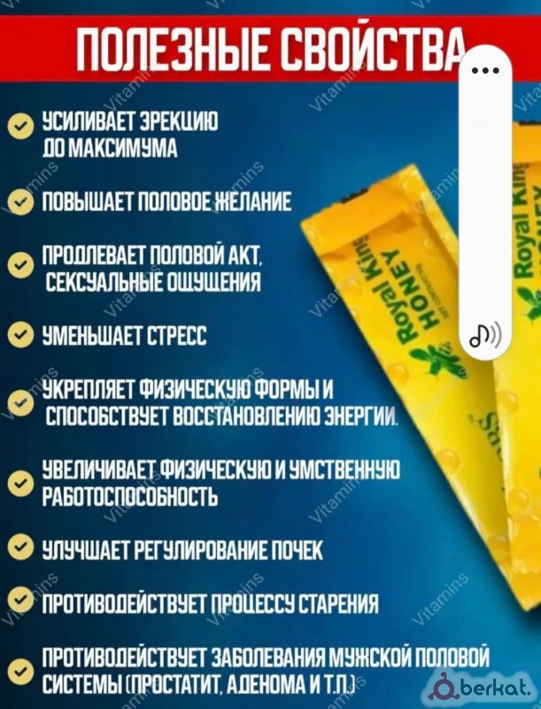 Полезные свойства: Усиливает эр***ию до максимума, повышает половое желание и ощущения. Уменьшает стресс. Укрепляет физическую формы и способствует восстановлению энергии. Увеличивает физическую и умственную работоспособность. Улучшает регулирование почек. Противодействует процессу старения. Противодействует заболевания мужской половой системы (простатит, аденома и т.п.). Состав: Натуральный тропический мед. Тонгкат Али. Маточное молок. Мака перуанская. Женьшень. Корень куркумы. Экстракт трюфеля и др. Способ употребления: Принимать 1/3 или 1/4 пакетика один раз в 2-3 дня, за пол часа ДО - еды, половой близости, и тренировок. Противопоказания: Высокое давление, диабет, детям не достигшим