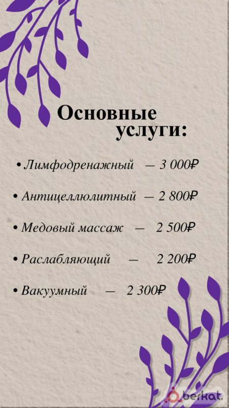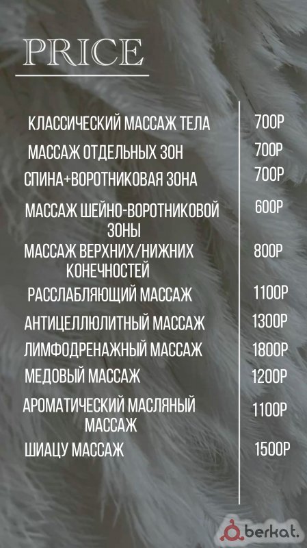 Приглашаю на сеансы расслабляющего женского массажа по специальной стартовой цене. Акция: Полноценный сеанс массажа за 1000 рублей для первых клиенток. Предложение действует ограниченное время. Мы делаем первые шаги и хотим, чтобы качественный отдых и забота о себе были доступны каждой. Вас ждет: · Тактильная практика, направленная на снятие стресса и мышечных зажимов. · Полная конфиденциальность и комфортная атмосфера. · Внимание к вашим пожеланиям и индивидуальный подход. Это отличная возможность познакомиться с нашим сервисом на особых условиях. Спешите записаться — количество сеансов по стартовой цене ограничено. Для записи и вопросов:+7(993)167-40-36.