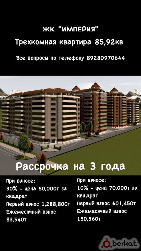 Трех комнатная 10микро рядом школа новая 2 мин 5эт без лифта Во дворе мечеть магазин и клиника Есть в соседнем дворе детский сад Цена 37т в месяц Звонить строго по этому номеру ‼️‼️‼️‼️ +7 938 012-20-25