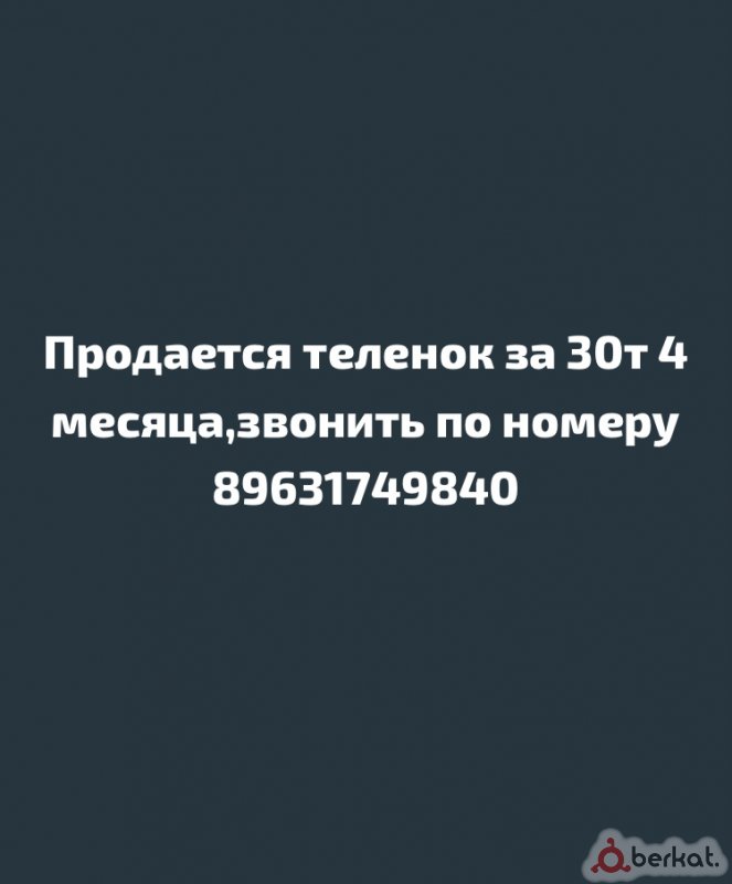 Продаю телёнка 4 месяца, на подсосе.Звонить по номеру 89881294046 . Минимальный торг . окончательно 28000