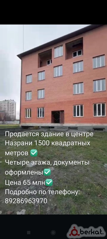 Продается здание в центре Назрани 1500 квадратных метров ✅ Четыре этажа, документы оформлены✅ Цена 65 млн✅ Подробно по телефону: 89286963970